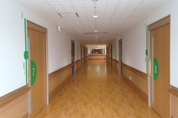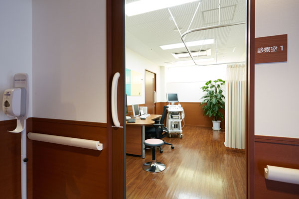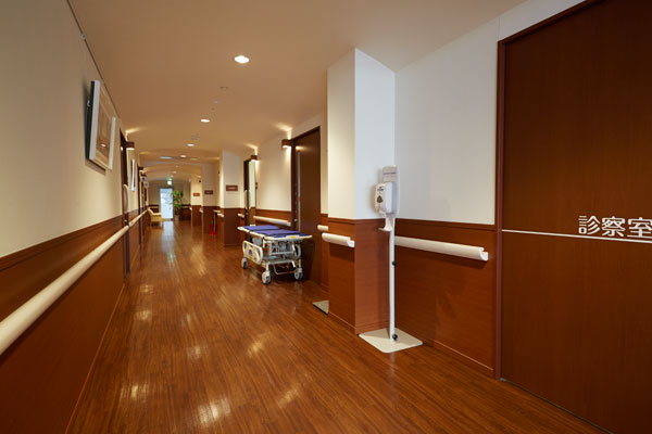 診察室前の廊下、各種診察室、レントゲン室などの写真です。